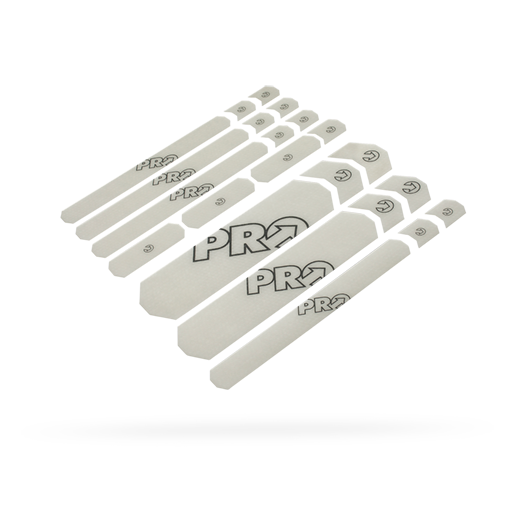 Le kit de protection de cadre PRO est un ensemble de vingt-deux autocollants de 0,6 millimètre d'épaisseur à disposer sur le cadre.